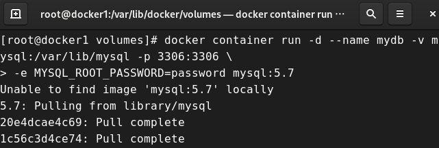 # docker container run -d --name mydb -v mysql:/var/lib/mysql -p 3306:3306 \