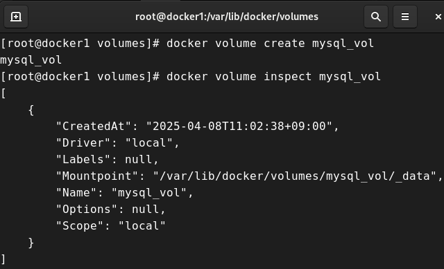 # docker volume inspect mysql_vol