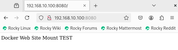 # echo 'Docker Web Site Mount Test' > /www/index.html