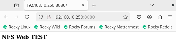 # docker run -d --name NfsWeb -v /nfscli:/usr/share/nginx/html -p 8080:80 nginx