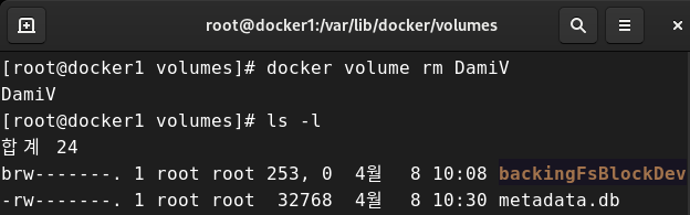 # docker volume rm DamiV