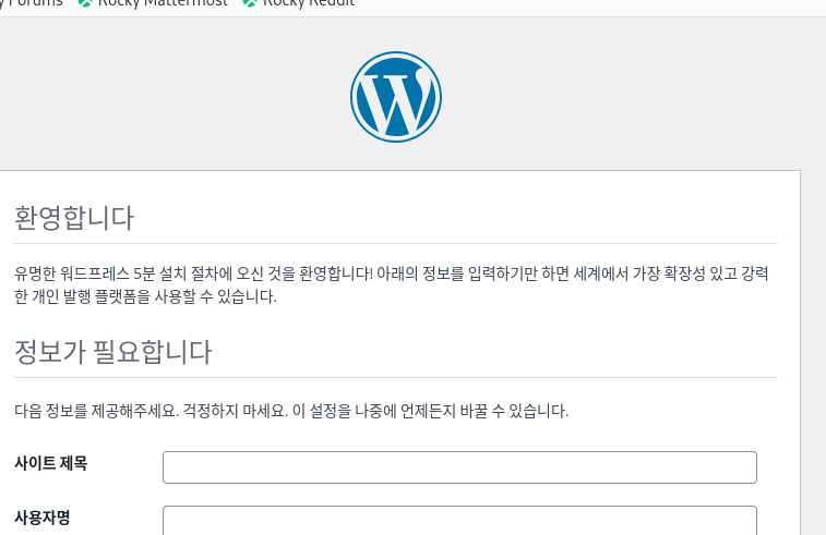 브라우저에서 http://localhost:8080 접속하면 설치 화면 나옴
