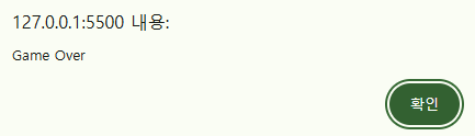 alert ("Game Over"); <<<<<<<<<<<< 게임 오버 알림