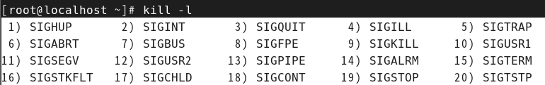 -l : 시그널 목록 출력 / 1.2.3.9.14.15.18.19.20 시그널번호