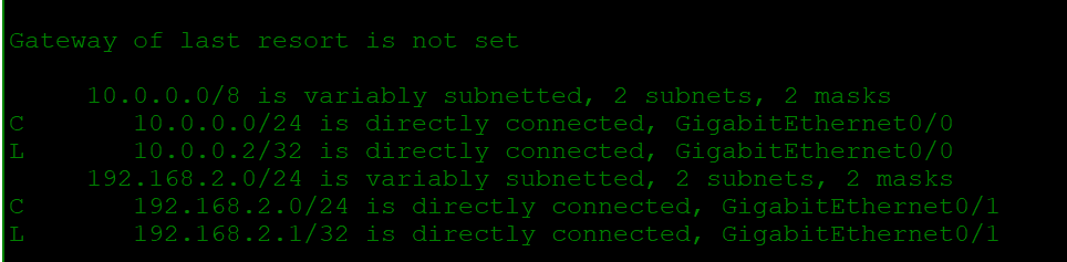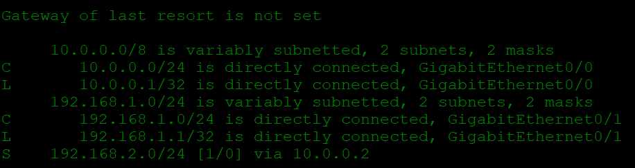 그러면 라우터 1 라우팅 테이블에 경로가 생긴 것을 확인할 수 있다