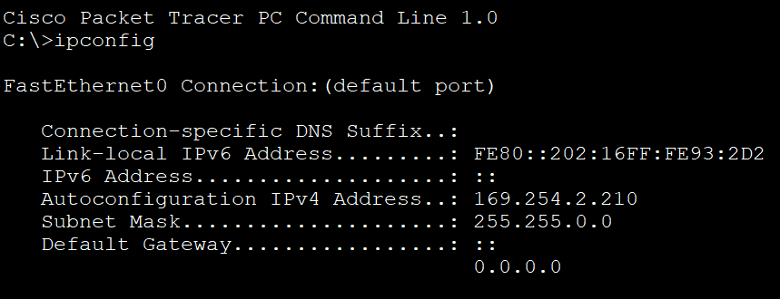 PC1은 자동적으로 IP가 할당되었지만, 쓰레기 IP 주소이다.