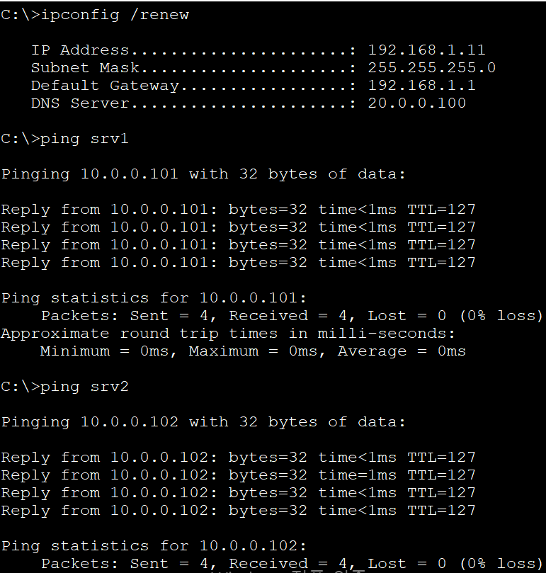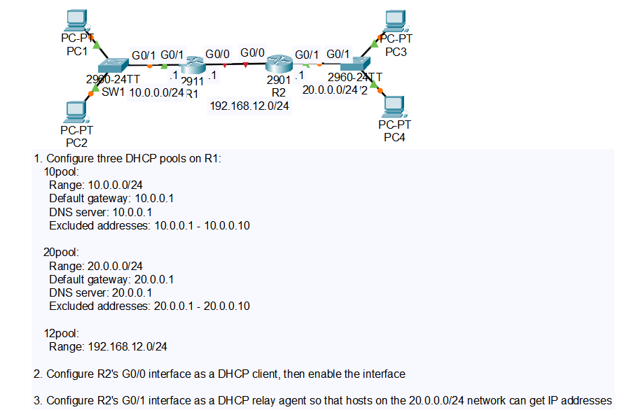 라우터 1를 DHCP 서버로 설정한다