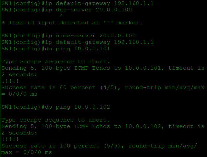 VLAN 1 에 대한 IP가 이미 있고, 디폴트 게이트웨이를 설정해준다